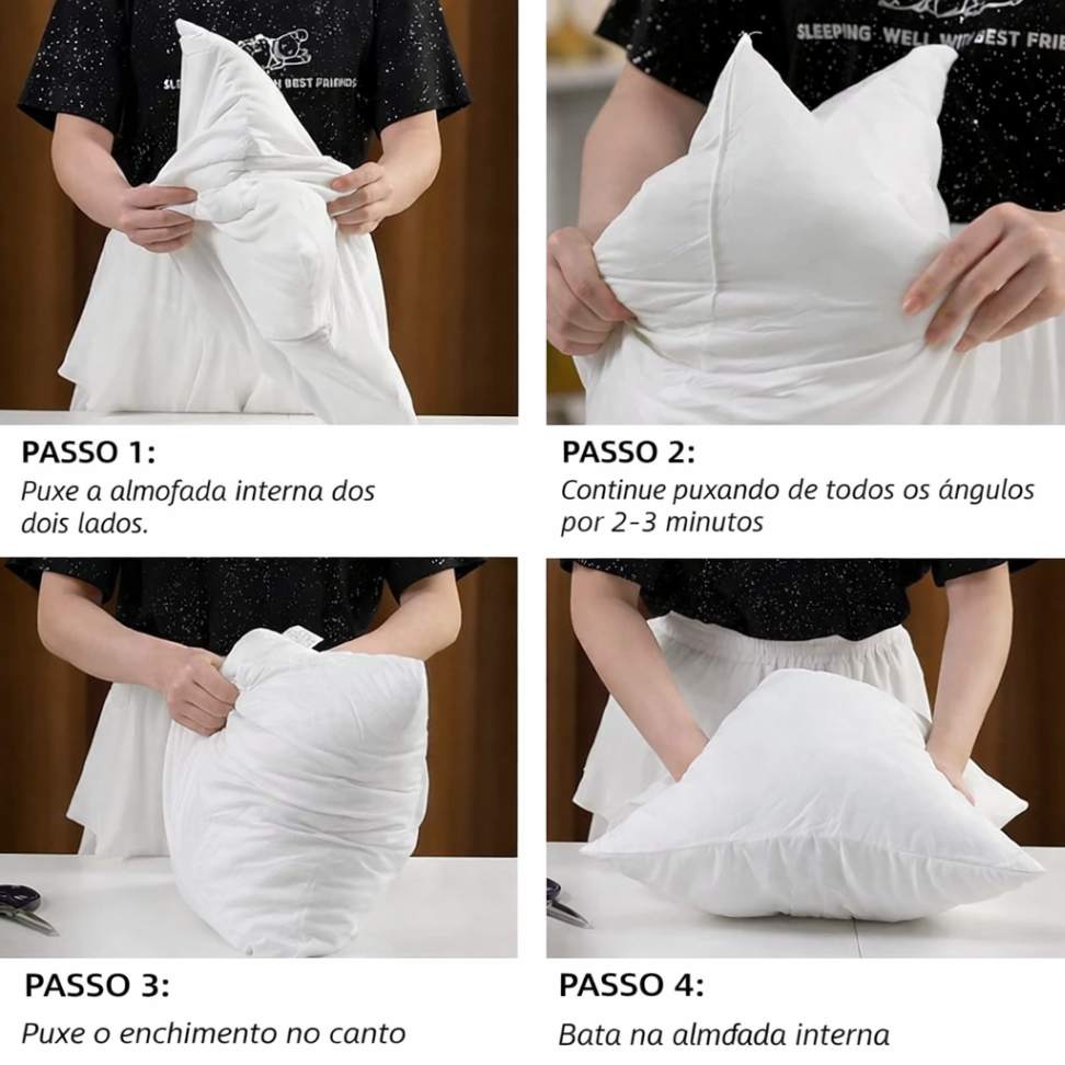 Para um uso ideal, bata suavemente para afofar totalmente ou coloque-os na secadora com ou sem bolas de tênis. Calor baixo por alguns minutos para recuperá-lo ao seu formato normal e fofo.